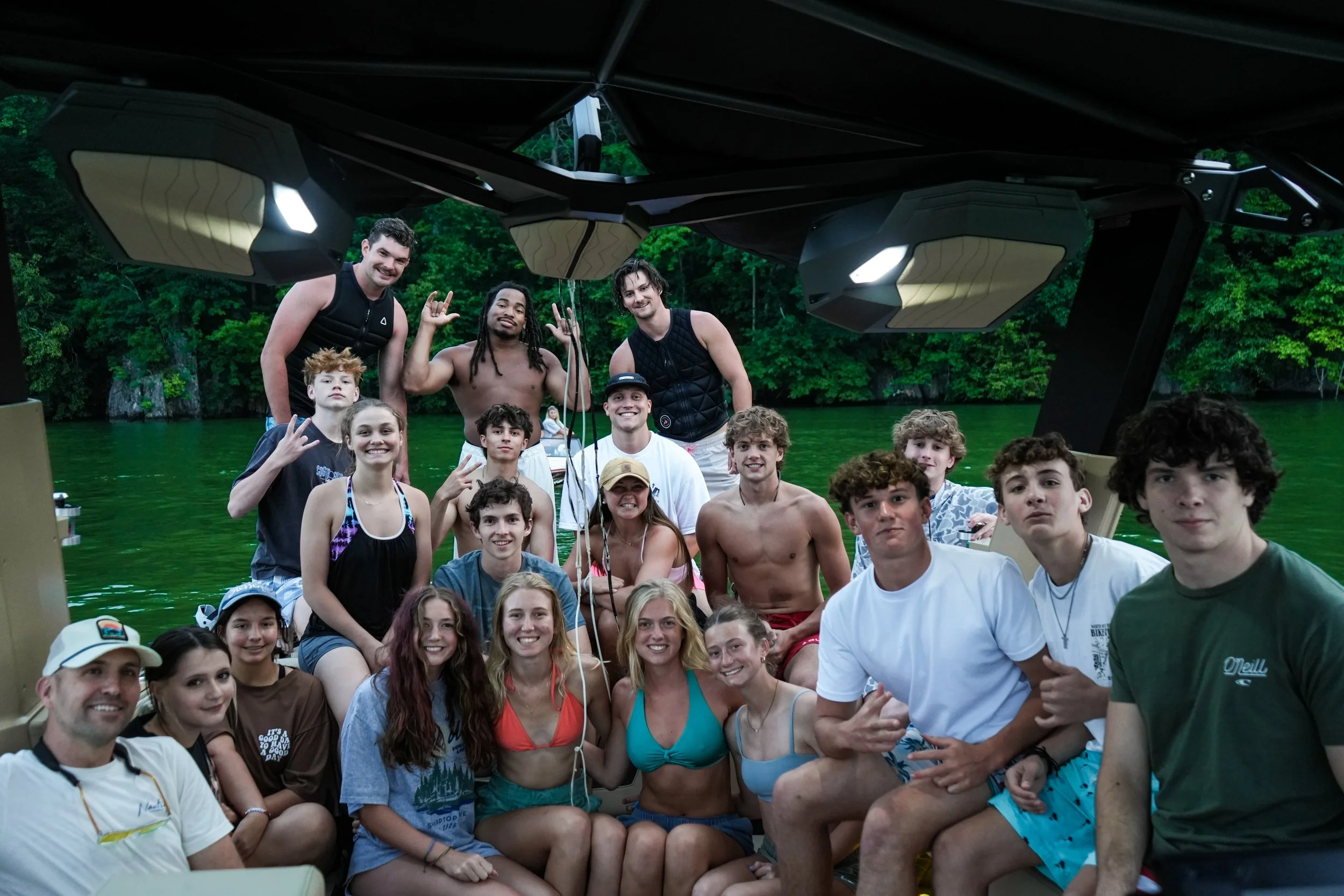 MAY — AUGThe boat's in the water. Weekly wakeboard sessions, lake days, and the heart of what SonRise is all about.